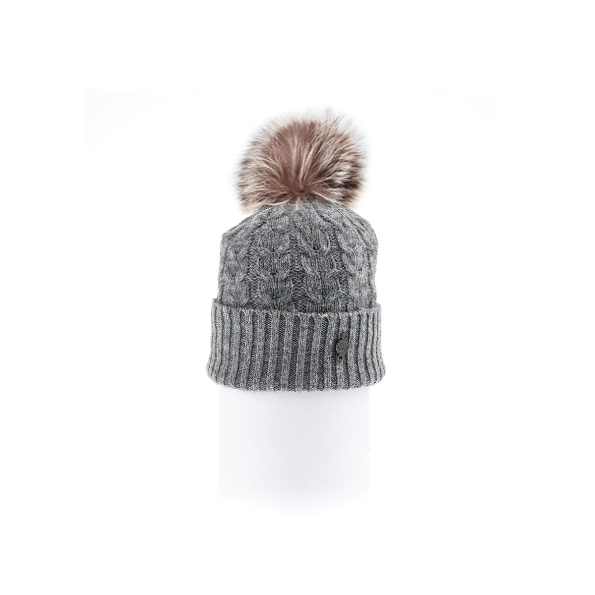Knitted in Montreal, Canada with 100% soft recycled cashmere, this cable-knit tuque is Harricanas hard to beat classic. Its softness with make this beanie your favourite winter headwear. A ribbed knit cuff stretches snuggly on your head. Comes with a removable upcycled Canadian Fur pompom. Complete the look with the Harricana Recycled Cashmere Cable Scarf.